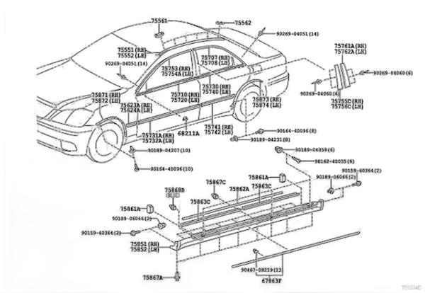 756230N010C0 右前翼子板外侧后防护条 前叶子板饰条(右) 丰田
